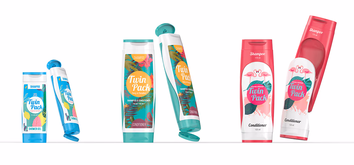 Das Twin Pack vereint Komfort und Effizienz in einem durchdachten Design. Zwei separate Kammern bieten Platz für ergänzende Produkte – ideal für Cross-Promotion, optimale Regalnutzung und den Einsatz unterwegs. Eine kompakte, moderne Lösung, die Material spart und gleichzeitig Ihre Markenpräsentation aufwertet.